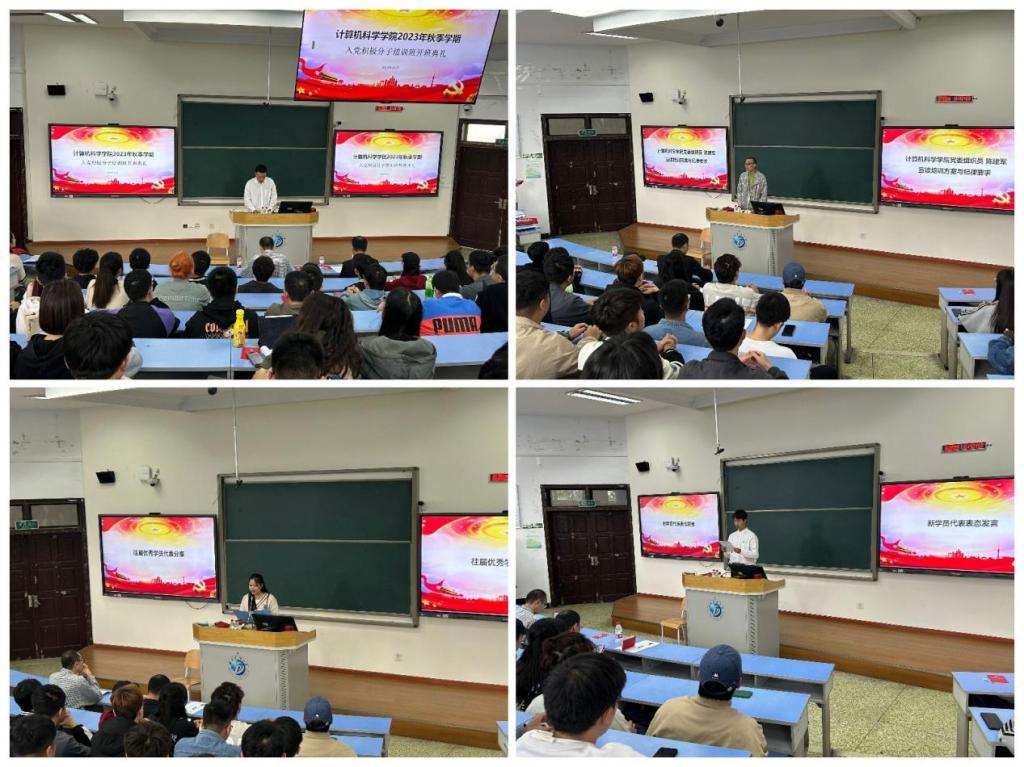 2023年10月12日下午16:30,思學樓B210時常傳出熱烈的掌聲,計科院秋季學期入黨積極分子培訓班開班典禮隆重舉行,學院黨委書記李澗松,學院黨委組織員陳建軍,研究生輔導員蔣欣岑,以及來自全院本碩各年級的學員們參與了本次開班典禮。