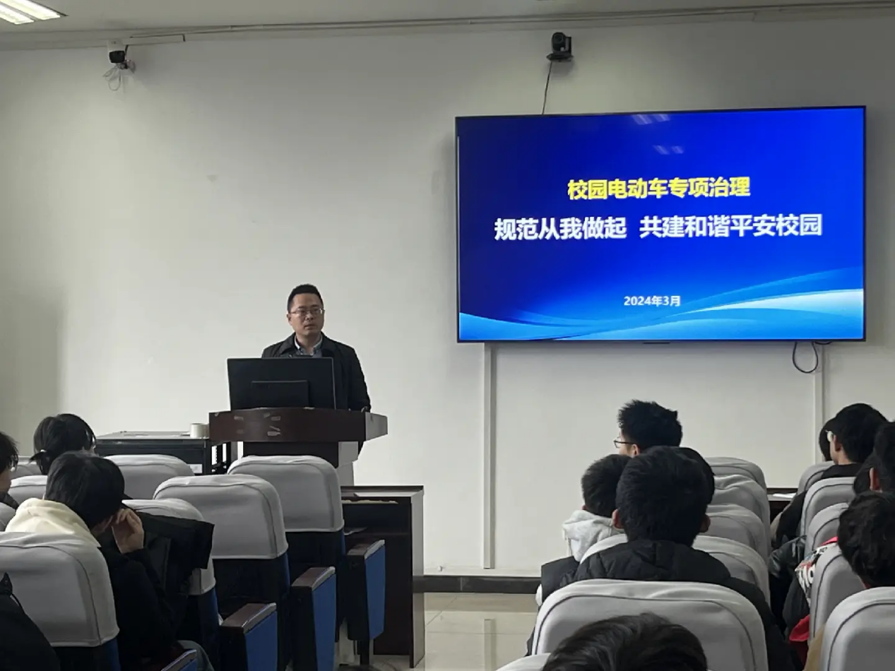 劉翔從三個方面展開了動員會。“為什么要開展校園電動車專項治理”,全國范圍內(nèi)多起因電動自行車違規(guī)充電、停放等問題所引發(fā)的火情火災,為我們敲響警鐘。校園里電動自行車數(shù)量多,停靠樓宇近,也存在很大安全隱患。因此電動車問題不得不整;“電動車專項治理做什么”,通過詳細解讀學校規(guī)定,幫助同學們更好了解電動車治理的工作步驟并重點強調(diào)在電動車問題上“師生同責”;“校園電動車專項治理怎么做”,對電動車管理“九個嚴禁”,現(xiàn)有電動車如何處理,學生合理訴求如何提等問題做詳細安排。