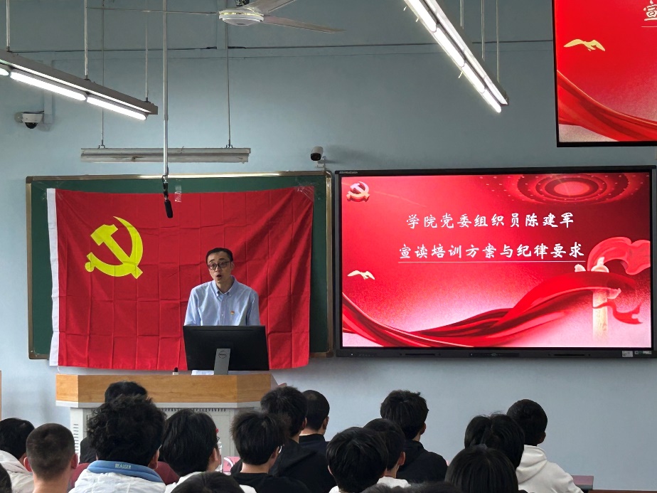 學院黨委組織員陳建軍宣讀培訓(xùn)方案與紀律要求。他詳細介紹入黨積極分子培訓(xùn)班的課程規(guī)劃、學習方式以及考核標準,并對學員們提出了明確的學習要求和紀律要求。陳建軍表示,希望學員們能嚴格遵守培訓(xùn)紀律,時刻保持良好的學習狀態(tài),確保在學習中能夠有所收獲。