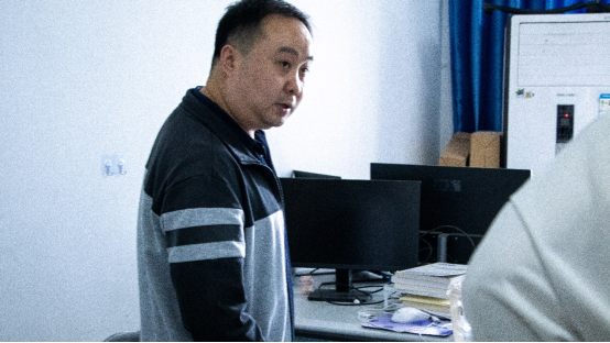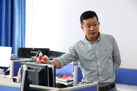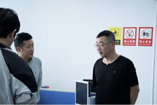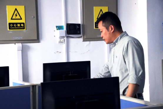 實(shí)驗(yàn)室主任唐亮檢查機(jī)房桌椅