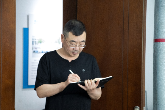 辦公室主任張意殊記錄走訪實(shí)驗(yàn)室情況