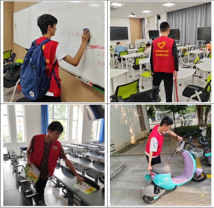 為呼吁同學們關注環境保護,提高環境意識、勞動精神,以及清掃校內垃圾,減少垃圾對校園環境的影響,建設綠色校園,維護清潔健康的學習環境。計算機與軟件學院學生公寓黨員工作站聯合青志協于6月13日17點開展了“黨團隊員齊行動攜手共建文明校園”的主題活動。成員分成若干個小組,深入明理樓AB區各教室及周邊的單車停放區等區域,撿拾校園垃圾、打掃教室衛生、規范單車停放。