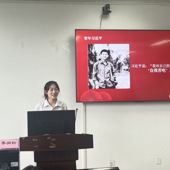 之后,學院學生劉雅琪作為匯報人,以“青年人就要自找苦吃”為題,以總書記的知青歲月為例,闡述自己的理解,并結合當下,號召同學們“自找苦吃”,磨練自身本領。而正如劉雅琪同學所言,每個專業的學生各有所長,不一定每個人都要去到偏遠的地方才能磨練自己,而對于計科院的同學,我們的貢獻在于發揮自己的作用,在崗位上盡自己的所能去提升自己,為國家做出自己的力量。