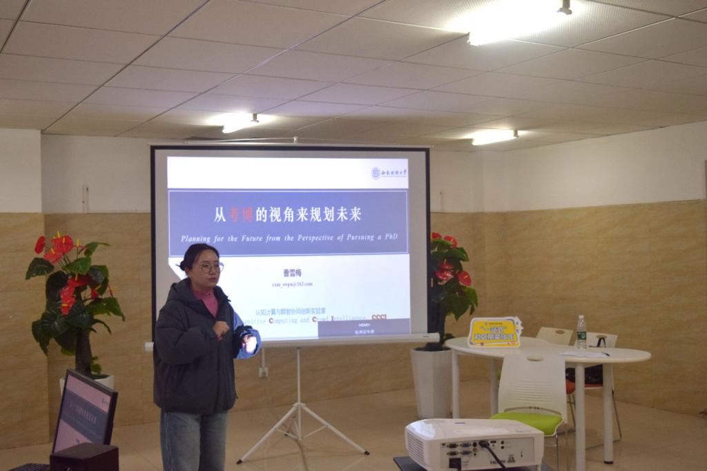 曹雪梅學姐為大家帶來的主題是“從考博的視角來規劃未來”。她結合自身實踐經驗,通過展示其學術研究成果、碩士階段榮獲的各項獎項以及個人的學習歷程,描繪了從本科階段一路走來,直至目前成功攻讀博士研究生的完整學術旅程。這一分享不僅內容詳實,而且極具啟發性,極大地激發了在場學弟學妹們的熱情與共鳴。