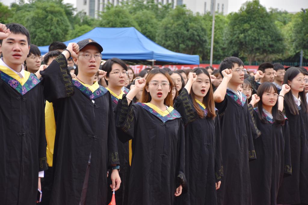 學位授予儀式上,全體畢業生進行了畢業宣誓,立志為祖國加油,為民族爭氣。畢業生代表向家長、教師和一線服務人員代表獻花,表達對父母的恩情,對教職工的感謝,對學校的不舍。全體師生合唱《沒有共產黨就沒有新中國》,表達對偉大祖國的美好祝福。