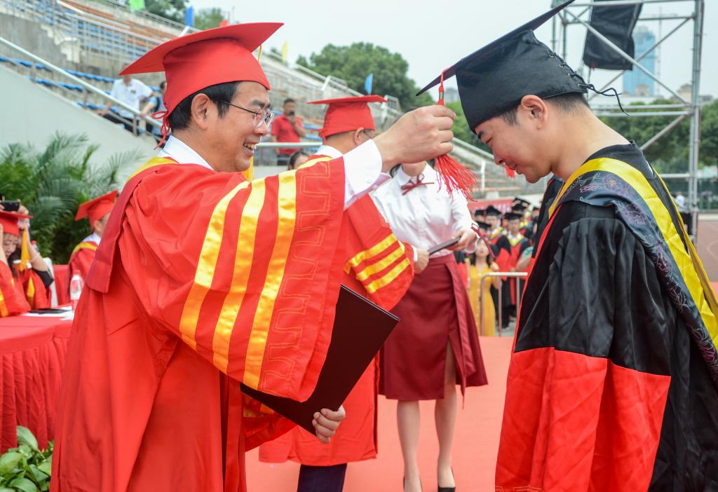 校友代表,學校學位評定委員會委員和教師代表,全體博士生導師、各學院黨政負責人、各職能部門主要負責人,全體畢業班輔導員、畢業生家長代表以及全體畢業生參加了典禮。典禮以視頻方式在校本部和南充校區同步進行。典禮由校黨委書記趙正文主持。
