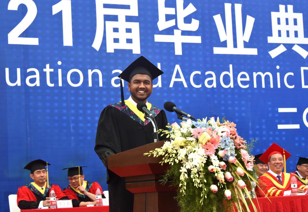 來自孟加拉國的機電工程學院2017級國際學生英俊追求夢想的腳步開始于四年前打開西南石油大學錄取通知書的那一刻。他說,感謝學校給了我接受高等教育的機會,并為我們提供了安全的求知環境和良好的學習氛圍,我將繼續努力,把我在看到的,聽到的,感受到的中國故事講給世界,做一名優秀的中外文化使者。