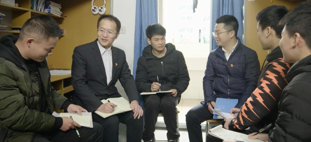 ▲朱紅鈞和學生在寢室談心