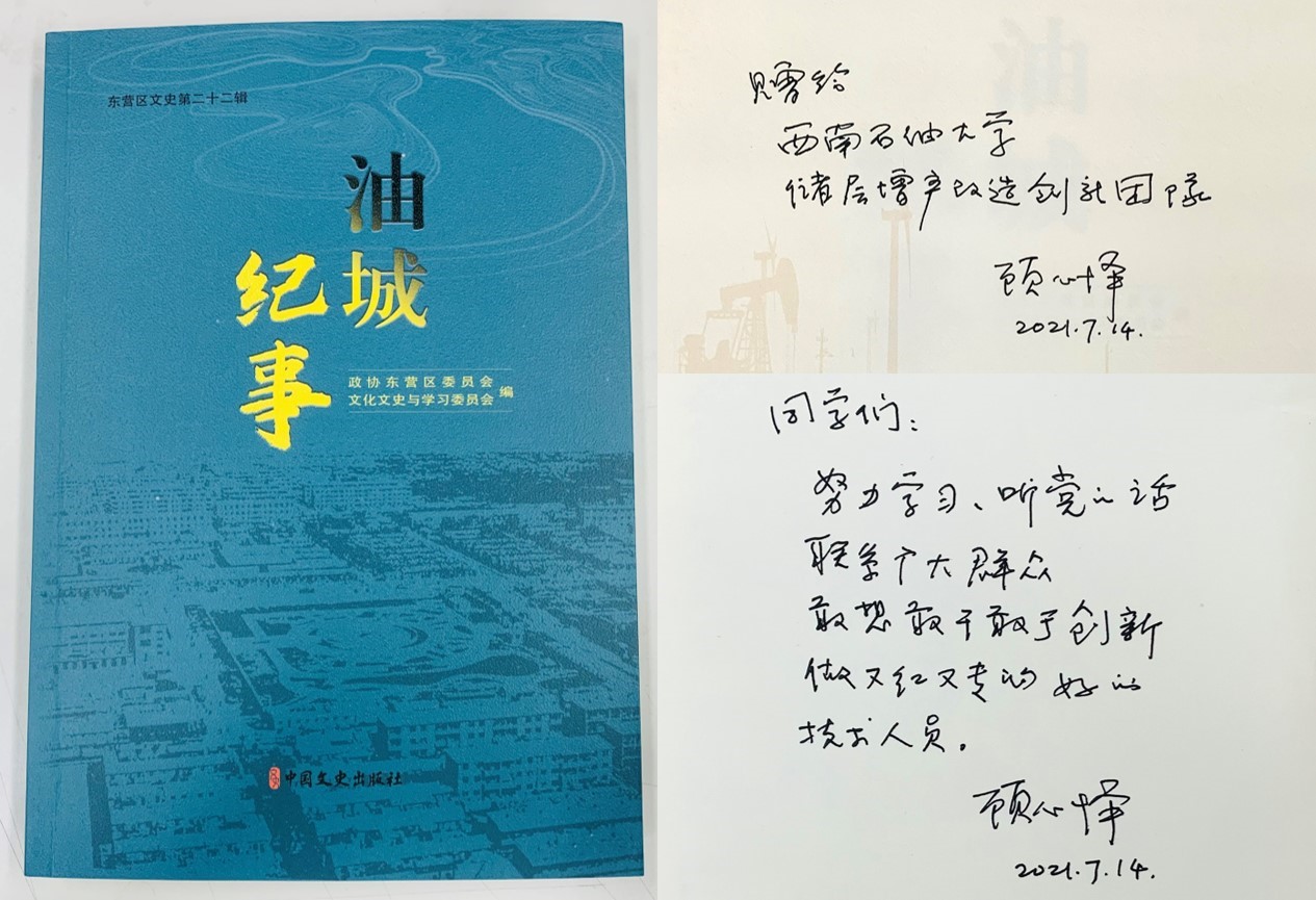 “同學們,努力學習,聽黨的話,聯系廣大群眾,敢想敢干敢于創新,做又紅又專的好的技術人員?!痹趧倮吞?,中國工程院院士顧心懌在贈與實踐隊的《油城紀事》這本書的封面寫下了這么一段寄語。實踐隊成員王錦內心久久不能平靜,被老一輩石油人愛黨愛國愛崗的情懷深深感染,也更加堅定了興油報國的理想信念。