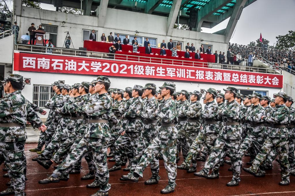 10月28日上午,成都校區2021級本科生軍訓匯報表演暨總結表彰大會在一期田徑場舉行。5462名學生經過刻苦訓練,圓滿完成了軍訓任務,用精彩的匯報表演向學校交了一份滿意的答卷。