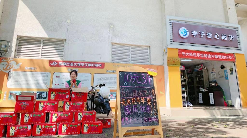 “愛心助農,扶貧惠民。”近日,西南石油大學“學子愛心超市”柜臺側面墻上的一面錦旗引人注目。