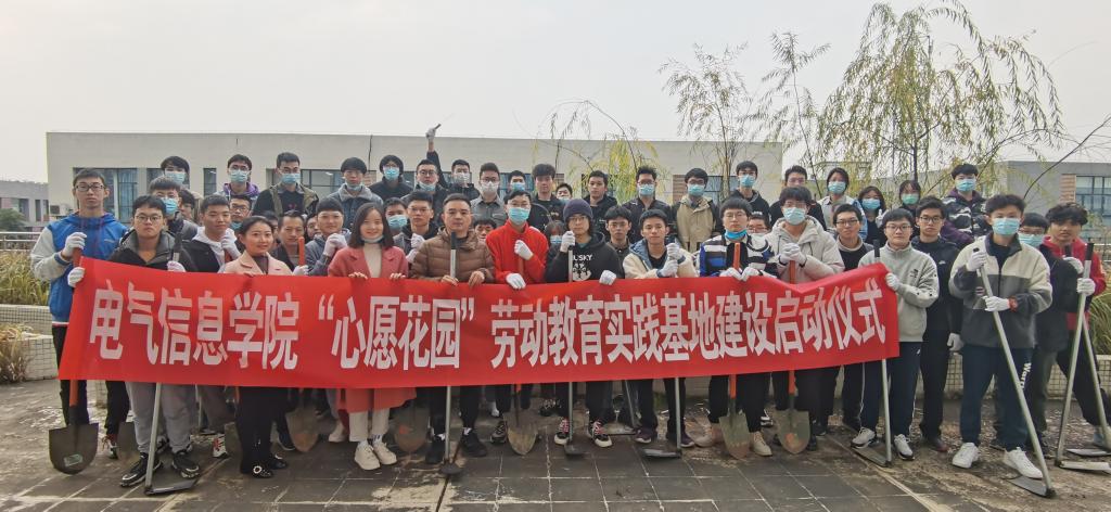 11月18日下午,電氣信息學院舉行“心愿花園”勞動教育實踐基地建設啟動儀式,學院50余名學生代表參與儀式。