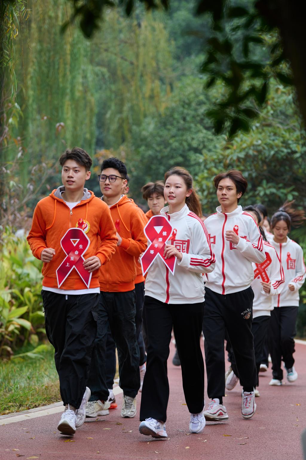參加活動(dòng)的全體同學(xué)站成紅絲帶形狀,齊聲宣誓“我志愿成為抗擊艾滋病的一員,做個(gè)人健康的第一責(zé)任人” ,隨后參加了環(huán)校健康跑。