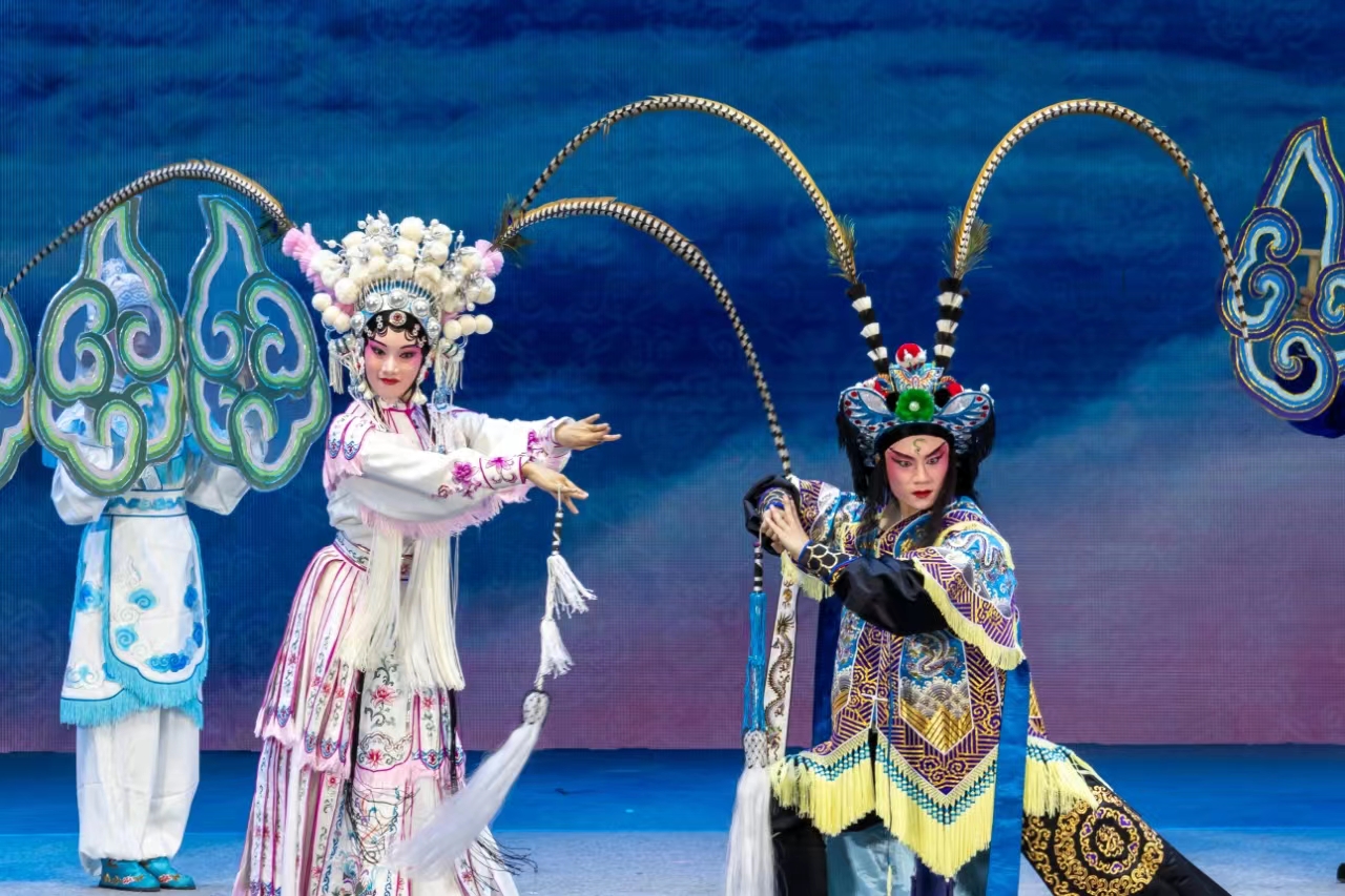6月14日,南充市川劇團展演了川劇《白蛇傳》。全戲共分九幕:佛殿掙鎖、收青下凡、船舟借傘、終成眷屬、扯符吊打、蒲陽驚變、仙山盜草、江岸誘許和水漫金山,講述了白蛇和許仙的兩生愛恨情仇。演員們在舞臺上“吞云吐霧”,輔以噴火、變臉、踢慧眼等川劇特技,水袖翩舞,撐傘江南煙雨中,女旦的紅妝粉黛、武生的黑臉沉陰、川劇的獨特唱腔,展現了中華優秀非遺文化的韻律和魅力,震撼、凄美。
