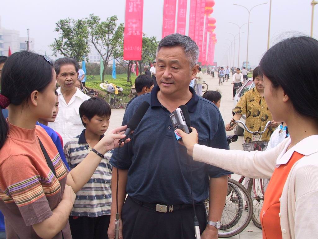 2002年8月14日,時任黨委書記董保真在搬遷現場接受記者采訪
