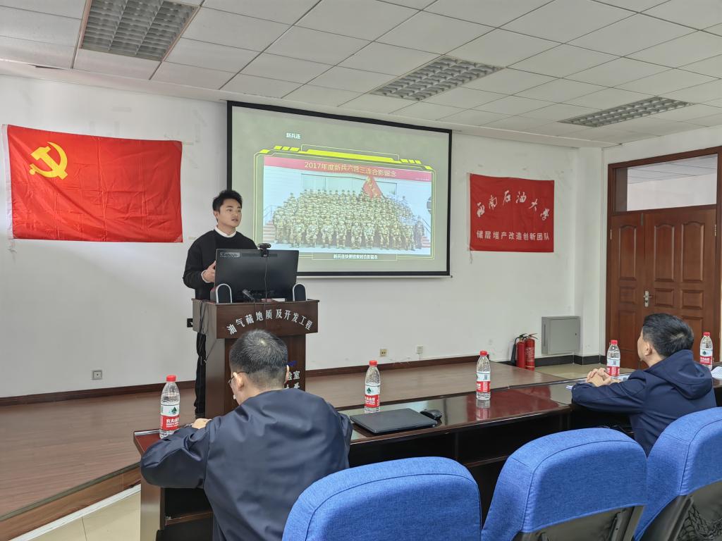 王鑫林和楊維鑫作為儲層增產改造創新團隊中的兩名退伍軍人也分享了他們的軍旅生生活。他們都有著炙熱的入伍初心,并在部隊的鍛煉中堅定了信念、磨煉了意志、提升了能力。退伍返校后,他們帶著嶄新的精神風貌,制定了明確的目標并為之持續奮斗。