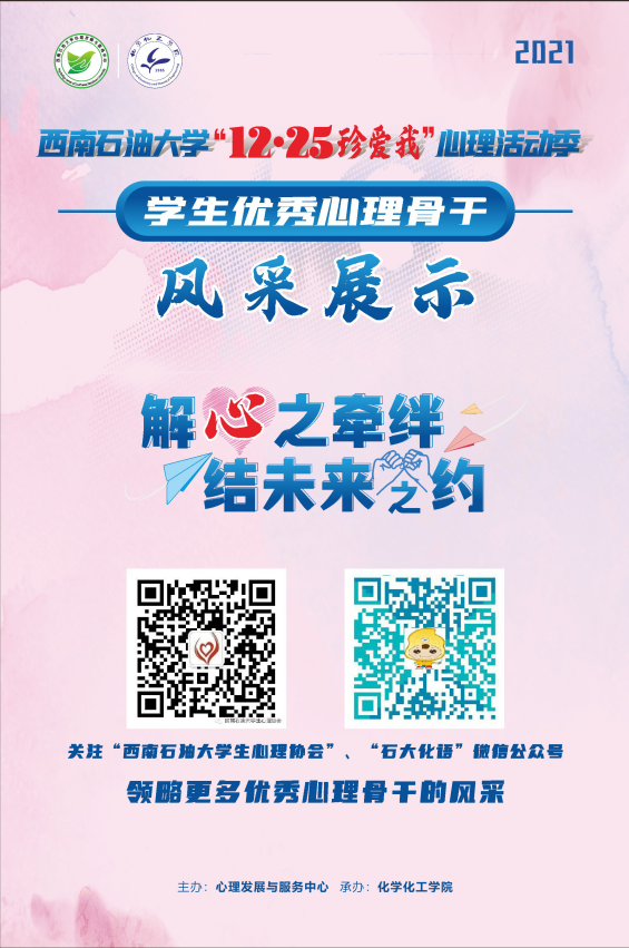 近日,學校心理發展與服務中心開展學生心理骨干風采展示活動,面向全校各學院征集心理骨干的優秀事跡、典型做法。活動共評選出6名優秀心理骨干,進行線上、線下同步展示...[詳細]