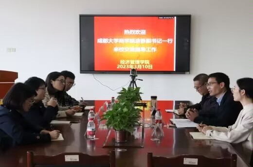 3月10日,成都大學商學院副書記涂靜、衡容、林丹、王澤晗等一行人來我院進行工作訪談,與我院黨委副書記曾有為、團委書記劉波、輔導員申成琳等在博學樓B403展開交流座談。