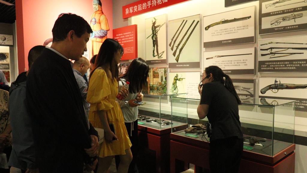 在國防兵器館內,師生們回顧了從青銅時代、鋼鐵威力、火器興起、近代機械、當代兵器的兵器發展歷史,觀覽了坦克、飛機、導彈、魚雷艇等大型武器裝備。