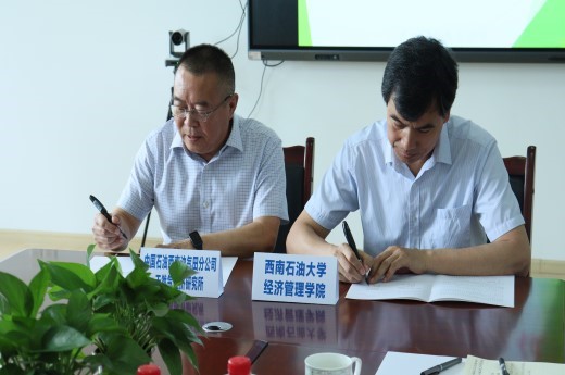 中國石油西南油氣田分公司天然氣經濟研究所副所長王富平、副總經濟師段言志、科研管理部主任蒲蓉蓉、辦公室主任周波、企管部副主任李佳、科研管理部主管李銳,學院副院長郭志鋼、蘇昊、辦公室主任李洪祥、研究生招生培養干事徐余躍參加了簽約儀式。