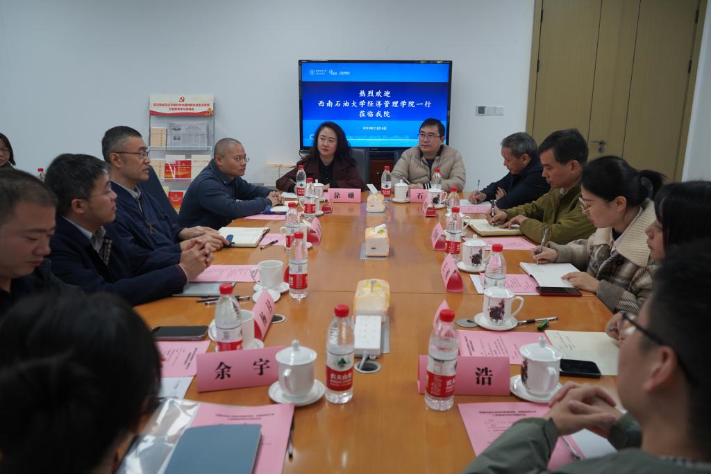 黨劉栓對西南財經大學工商管理學院的發展成就和建設全國樣板支部的成果表示欽佩,他向對方介紹了我院的發展和黨建工作開展情況,他表示,希望西南財經大學工商管理各位領導和老師不吝賜教,對我院的工作給予指導和幫助。