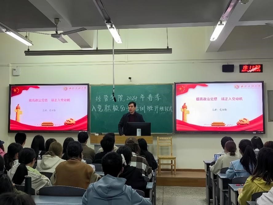 4月9日,我院2024年春季入黨積極分子培訓(xùn)班第一課在博學(xué)樓B502開(kāi)講,學(xué)院黨委書(shū)記黨劉栓擔(dān)任主講,本次培訓(xùn)班指導(dǎo)教師王娟、李晨及全體培訓(xùn)班學(xué)員參加。