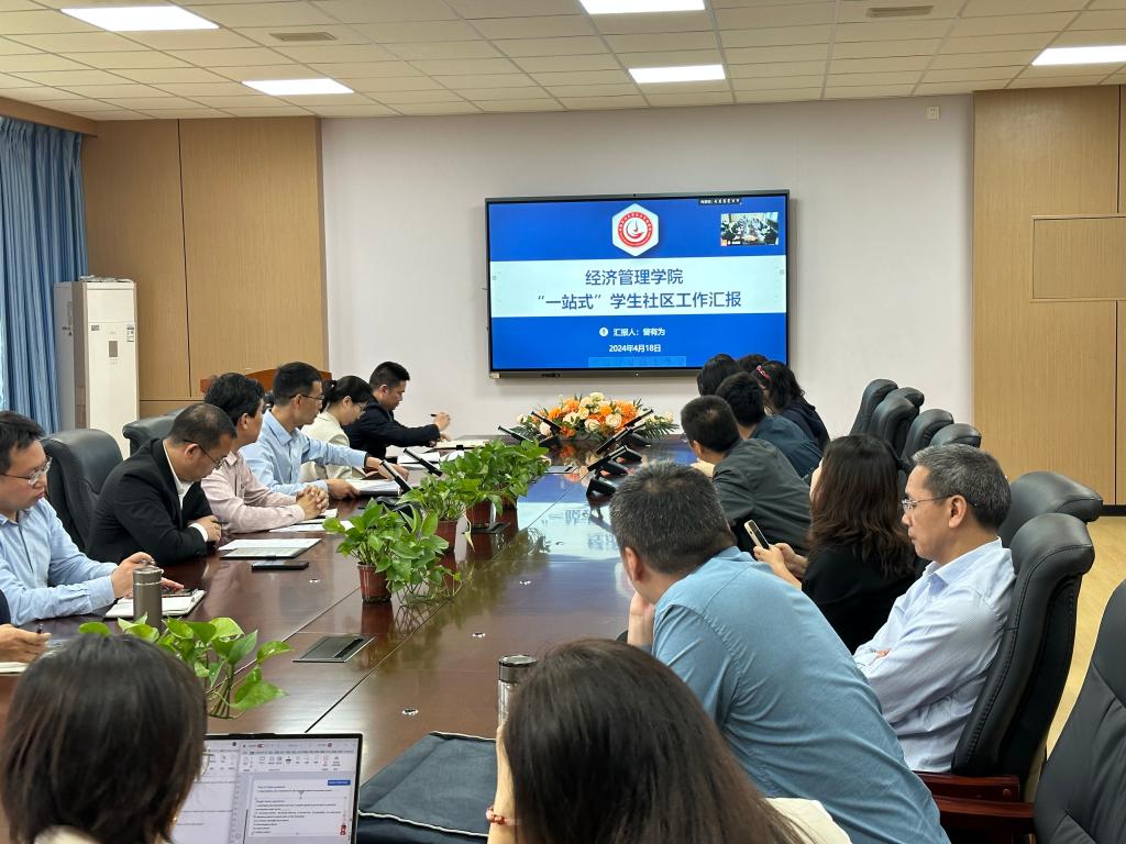 4月18日,經管院在博學樓B403召開“一站式”學生社區建設工作推進會,學院領導、科級干部、教研室主任、支部書記和輔導員參加,黨委書記黨劉栓主持會議。