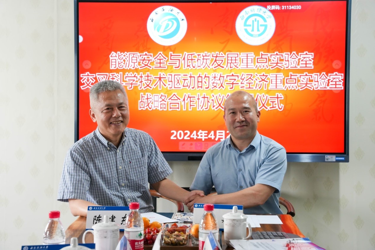 4月26日,我校人文社會科學處處長陳怡男、經濟管理學院院長鄭小強、能源安全與低碳發展省級哲學社會科學重點實驗室執行副主任李廷與來訪的西南財經大學交叉科學技術驅動的數字經濟省級哲學社會科學重點實驗室主任陳建東一行座談交流,李廷、陳建東分別代表雙方簽訂了戰略合作協議。