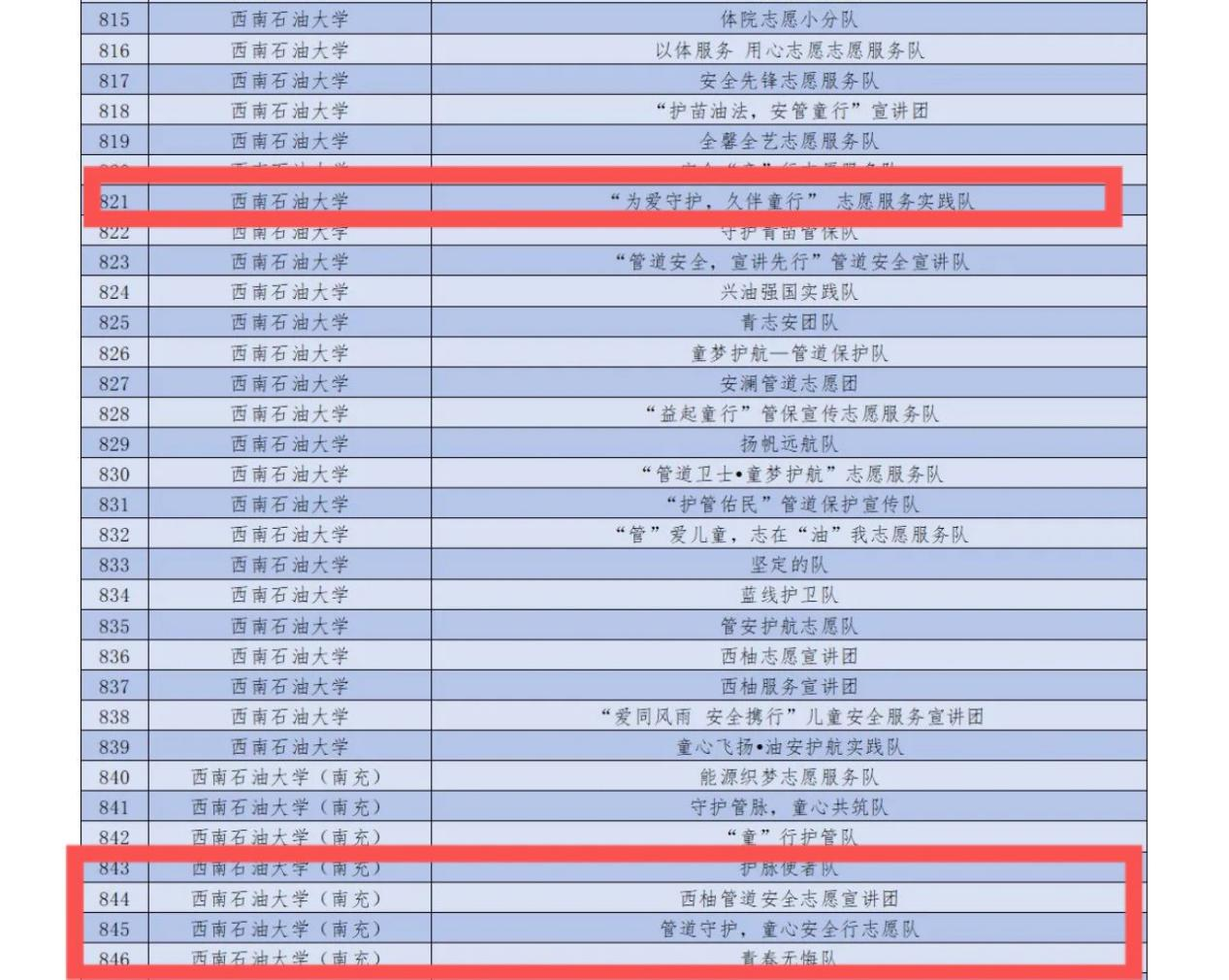 近日,西南石油大學經濟管理學院青年志愿者團隊傳來喜訊,經過層層選拔和嚴格評審,“為愛守護,久伴同行”志愿服務實踐隊、青春無悔隊、護脈使者隊、西柚管道安全志愿宣講團以及“管道守護,童心安全行”志愿隊共計五支隊伍成功入選由團中央青年志愿者行動指導中心、中國少年兒童新聞出版總社有限公司以及國家石油天然氣管網集團有限公司聯合開展的2024年關愛行動“少年兒童安全守護計劃”管道保護宣傳志愿服務項目。