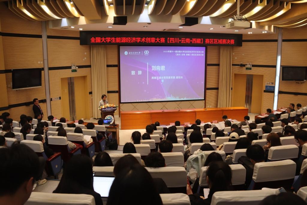 西南石油大學(xué)黨委常委、副校長劉向君,教務(wù)處、研究生院、經(jīng)濟(jì)管理學(xué)院負(fù)責(zé)人出席了開幕式。劉向君致歡迎詞,指出在我國持續(xù)推進(jìn)現(xiàn)代產(chǎn)業(yè)體系建設(shè)、發(fā)展綠色低碳經(jīng)濟(jì)、加快新型能源體系建設(shè)的背景下,全國大學(xué)生能源經(jīng)濟(jì)學(xué)術(shù)創(chuàng)意大賽對多學(xué)科交叉融合解決能源經(jīng)濟(jì)和低碳發(fā)展中的重點(diǎn)難點(diǎn)問題及大學(xué)生的創(chuàng)新能力培養(yǎng)具有重要意義。