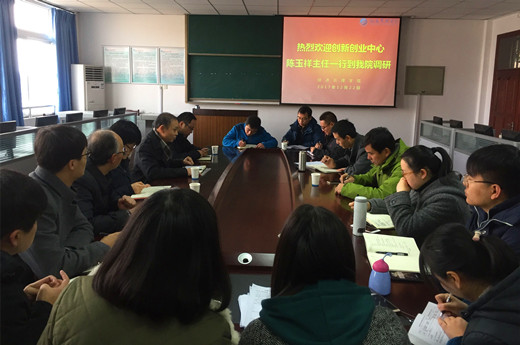 12月22日上午,我校雙創中心主任陳玉祥一行蒞臨我院調研,會議在博學樓B401舉行。我院黨委書記黨劉栓、黨委副書記曾有為、教師代表熊志堅、鄭小強以及學院全體輔導員出席會議。