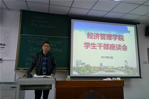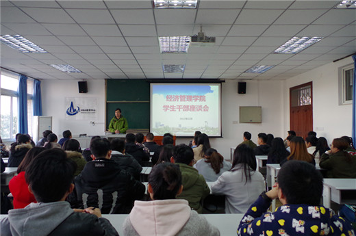 12月8日下午,經管院組織召開學生干部座談會,會議由學院主要學生干部參加,團委書記劉波主持,學院黨委書記黨劉栓、黨委副書記曾有為以及全體輔導員出席會議。