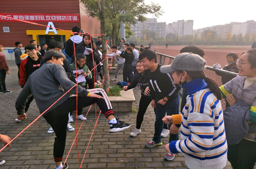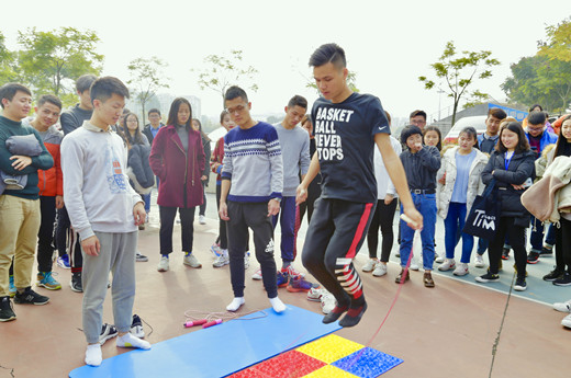 接下來進(jìn)入真正的較量型比賽。接棍子、穿越漁網(wǎng)和綁腳折返跑都體現(xiàn)出每個組的團結(jié)與協(xié)作:接棍子項目大家屏息凝神保證棍子不掉;穿漁網(wǎng)集體出力將組員抬到對面,而不觸動漁網(wǎng);在最痛苦的指壓板跳繩中,忍著疼痛完成對集體的承諾。無論每輪比賽勝利或失敗,每個小組內(nèi)都沒有催促與責(zé)問,只有鼓勵和關(guān)懷。“親身經(jīng)歷時,才明白踩上指壓板的那種疼痛。一直跳繩跳得很痛苦,以致沒法連續(xù)跳,延長了總計時時間。但是大家都在鼓勵著我,尤其是我們組的隊員們,沒有嫌棄我拖后腿,一直在旁邊為我加油打氣。感謝團隊中的每一個人。”宣傳部部長李嘉琪說。