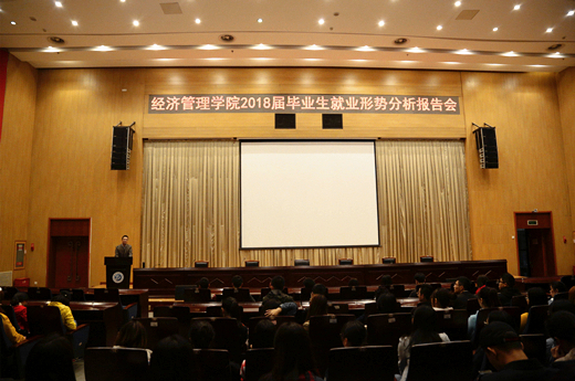 10月31日上午,院黨委副書記覃吉春在圖書館報告廳為2018屆畢業生舉行畢業生就業形勢分析報告會。