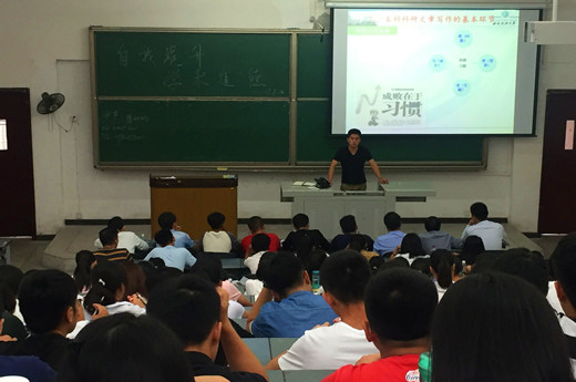 尹申從科研文章的重要性、寫作的基本環(huán)節(jié)、問題的選擇三方面闡釋如何提升自我修養(yǎng)。他指出,科研素養(yǎng)的形成需要以良好的知識積淀和科研方法為基礎(chǔ),同學(xué)們應(yīng)該在平時學(xué)習(xí)中養(yǎng)成良好的習(xí)慣。同時,尹申通過多媒體向新生演示如何進行文獻檢索。