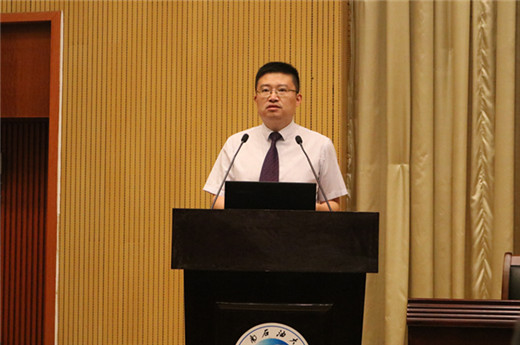 典禮上,院長高軍致迎新詞。高軍從學(xué)習(xí)時間、授課方法等多個方面將大學(xué)與高中進行對比。“大學(xué)時光轉(zhuǎn)瞬即逝,要學(xué)會合理規(guī)劃時間。”是高軍對新生的忠告,他希望新生在平時學(xué)習(xí)中腳踏實地,做一個“今天你以母校為榮,明天母校以你為傲”的經(jīng)管人才。高軍強調(diào),2017級同學(xué)在大學(xué)期間恰逢2018改革開放40周年、2020全面小康、2021建黨100周年等重要節(jié)點,同學(xué)們要把握這個偉大時代的機遇,不忘初心,努力成為國家棟梁之才。