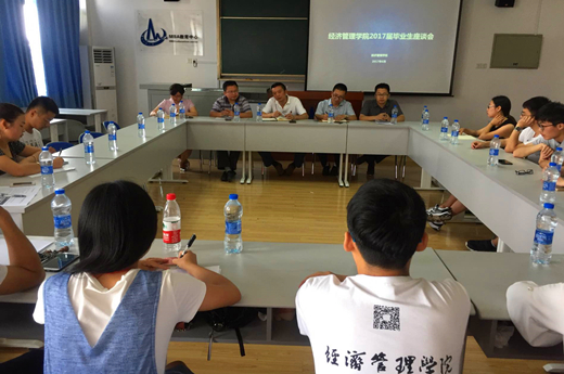 6月7日下午,我院于博學樓B407召開2017屆畢業生代表座談會,我院黨委書記任皓、副院長郭志鋼、會計學教研室老師龐敏、經濟學教研室老師何克東出席本次交流會,我院黨委副書記覃吉春主持會議。
