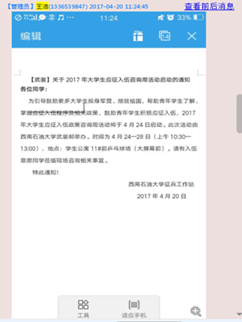 學(xué)院通過(guò)新媒介向?qū)W生推送應(yīng)征入伍信息