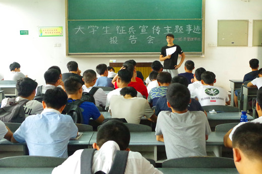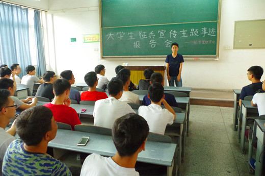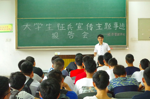 為積極引導和鼓勵學生參軍入伍,讓其了解一名優秀的鋼鐵軍人是如何“煉成”的,5月30日下午,經濟管理學院于博學樓B302召開了大學生征兵宣傳主題事跡報告會,全院有意愿參軍入伍的同學參加了報告會,大會由輔導員李凱主持。