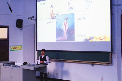 “中秋又稱(chēng)團(tuán)圓節(jié),祭月節(jié)。賞月、吃月餅、看燈會(huì)都是我們至今也仍在遵循的習(xí)俗。”李嘉琪不僅向大家講述了一些傳統(tǒng)的中秋習(xí)俗,還就中秋的起源問(wèn)題以及中秋節(jié)跟隨不同朝代的變化向大家做了仔細(xì)的闡述。