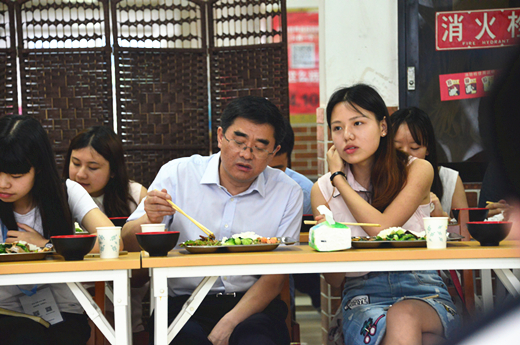 進餐時,同學們異常踴躍,不時有人向趙校長、向大家分享自己的想法。來自阿壩州的羌族姑娘肖恒告訴大家,她的夢想是能夠在大四期間考上公務員,然后回到阿壩支援家鄉工作;來自維吾爾族的哈麗美熱告訴校長,她很感謝學校特意為少數民族同學開設的用餐窗口及共同慶祝他們傳統節日的活動;副班長白夫則來自我校“精準扶貧”三縣之一的涼山州金陽縣,她說:“有了這樣一個政策,我第一次感覺學校同自己的家鄉有了聯系,為家鄉做些事的想法也越發強烈。”