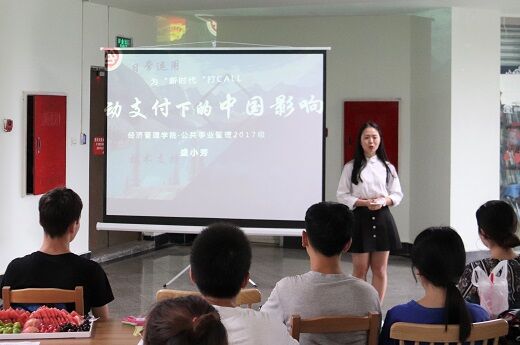 “要是選一個(gè)東西帶回國(guó),我肯定會(huì)選擇支付寶”,埃及國(guó)民說(shuō)道。公共事業(yè)管理2017級(jí)的盛小芳同學(xué)從日常運(yùn)用、國(guó)外影響、技術(shù)支持三方面介紹了移動(dòng)支付下的中國(guó)影響,現(xiàn)如今,中國(guó)的移動(dòng)支付已經(jīng)走出國(guó)門(mén),影響著“一帶一路”沿線的多個(gè)國(guó)家,紛紛開(kāi)始使用中國(guó)企業(yè)的移動(dòng)支付標(biāo)準(zhǔn),“作為新時(shí)代主要建設(shè)力量的我們,更應(yīng)該為祖國(guó)的強(qiáng)大自豪,為新時(shí)代打call,”她說(shuō)道。