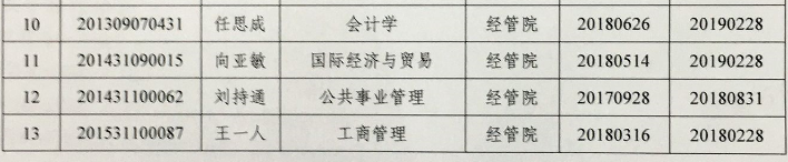 2019年12月6日,學校下發西南石大教【2019】104號文件《關于給予李清華等13名學生退學處理的決定》,對我院任思成等4名學生作退學處理,現予以公告,公告期從2019年12月7日至2019年12月13日。公告期滿,處理決定視為送達學生本人。