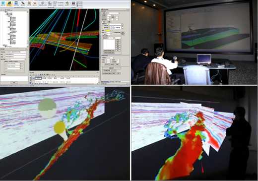 在國家油氣重大專項項目及中地共建經費的支持下,我校投入300多萬元人民幣建設了由工作站、大型虛擬現實投影系統、 虛擬現實交互設備以及虛擬現實CAVE系統,并由鉆井、地質、油藏等方面的專業研究人員歷經3年的開發,建成了數字化鉆井實驗開發虛擬現實軟硬件平臺。
