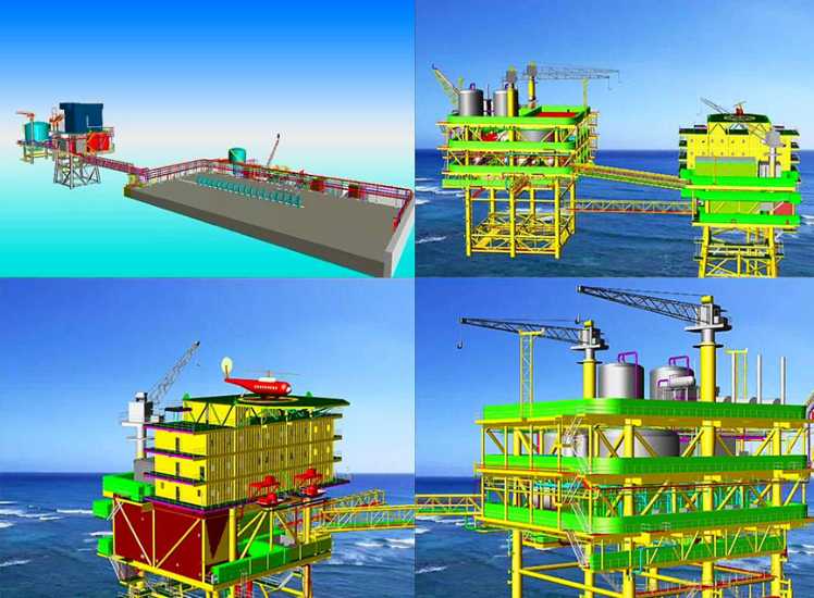 為了彌補海洋油氣開發相關專業實驗和實踐方面的空白,我校組織相關專業的教學科研人員,利用虛擬現實軟硬件平臺和先進的工程仿真軟件、 數字化建模軟件系統,及自主開發的交互式虛擬現實渲染和漫游、交互控制軟件模塊,建立了海洋油氣開發工藝虛擬現實仿真平臺, 可仿真海洋油氣開發作業環境、作業設備及工藝流程。是可以實現海洋鉆、采、輸教學實驗最經濟、安全、靈活、全面的實驗和實訓手段, 具有在虛擬海洋作業環境中漫游,交互拆裝、組合和操作設備、進行有關工藝仿真等功能。典型案例如圖3~圖5所示。