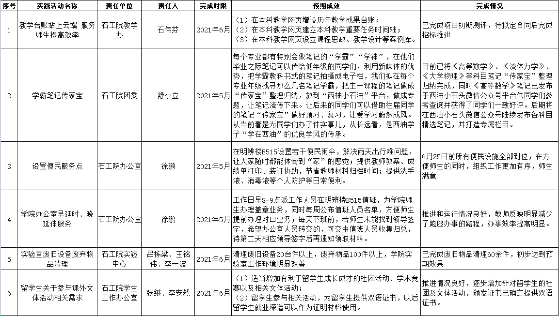 關于公布學院“我為師生辦實事”實踐活動項目的通知