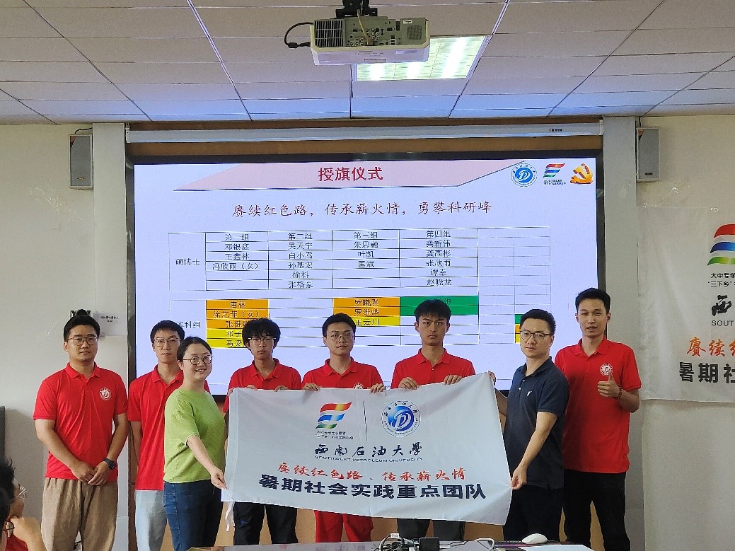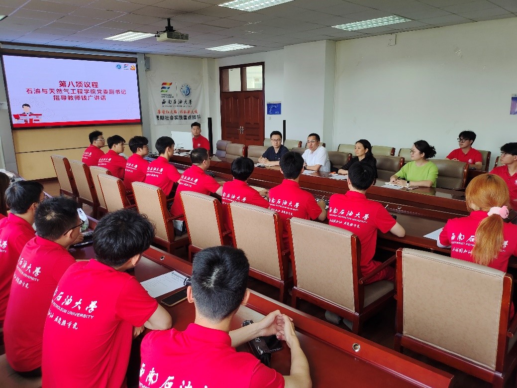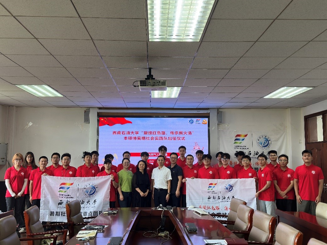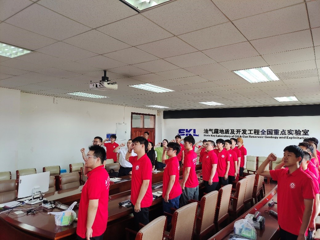 為了深化廣大青年對于黨史黨紀的學習,儲層增產改造創新團隊黨支部聯合學院團委組建了“賡續紅色路,傳承薪火情”社會實踐隊,以期達到在實踐中育人的效果。2024年7月11日下午,石油與天然氣工程學院黨委副書記、紀委書記錢廣,黨支部思政輔導員王琨,黨支部委員路千里老師,輔導員何敏等帶隊教師和實踐隊全體隊員在國重B401會議室舉行了出征儀式。出征儀式由儲層增產改造創新團隊黨支部副書記鄧銀鑫主持。