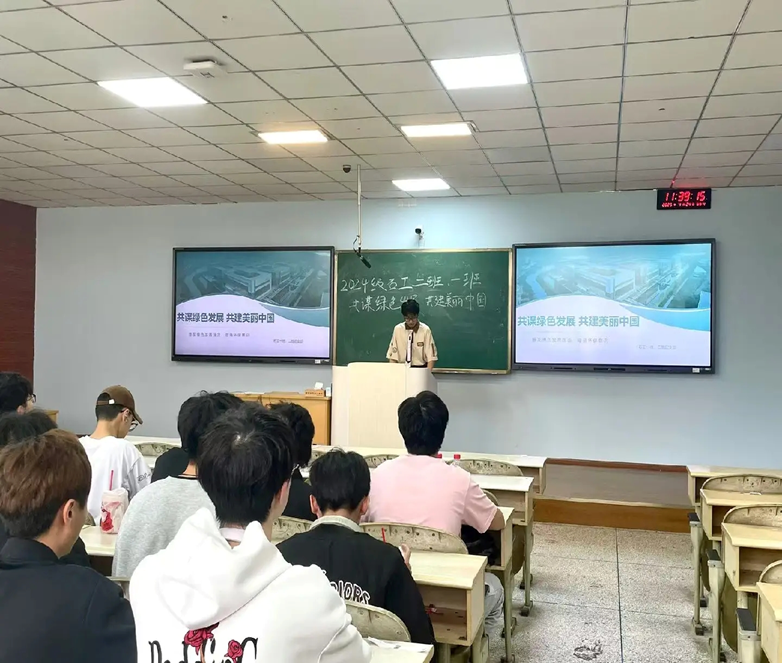 隨后,楊帆同學(xué)通過(guò)圖文資料,系統(tǒng)展示了中國(guó)在綠色發(fā)展領(lǐng)域的卓越成就。從塞罕壩荒漠變綠洲的生態(tài)奇跡,到石油企業(yè)推進(jìn)清潔生產(chǎn)、發(fā)展頁(yè)巖氣等清潔能源的轉(zhuǎn)型實(shí)踐,生動(dòng)詮釋了“綠水青山就是金山銀山”的理念。 知識(shí)競(jìng)答環(huán)節(jié)將班會(huì)氛圍推向高潮。題目涵蓋中國(guó)治沙工程案例、油氣行業(yè)低碳技術(shù)、“雙碳”目標(biāo)政策等內(nèi)容,同學(xué)們分組搶答、激烈角逐。在互動(dòng)中,大家不僅鞏固了綠色發(fā)展知識(shí),更深化了對(duì)專(zhuān)業(yè)使命的認(rèn)知。 最后楊帆同學(xué)在總結(jié)中強(qiáng)調(diào):“作為石油工程專(zhuān)業(yè)的學(xué)生,我們既要保障國(guó)家能源安全,也要扛起生態(tài)保護(hù)責(zé)任。”此次班會(huì)將時(shí)事熱點(diǎn)、專(zhuān)業(yè)知識(shí)與綠色理念深度融合,激發(fā)了石工一班學(xué)子投身綠色發(fā)展事業(yè)的熱情,為培養(yǎng)兼具專(zhuān)業(yè)能力與環(huán)保擔(dān)當(dāng)?shù)男聲r(shí)代人才注入動(dòng)力。