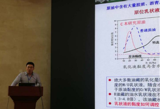 劉銳作了題為“原位乳狀液流度自控特性及大幅度提高采收率可行探討”的會議報告。報告從原位乳狀液的形成、流度自控機制及低成本、環保、高效的驅油特性闡述了原位乳狀液驅在水驅油藏特別是高溫高鹽油藏和傳統化學劑配注平臺受限的油藏大幅度提高采收率的可行性與應用前景。報告內容引起廣泛關注,受到了與會專家的高度肯定,論文被評為一等獎。