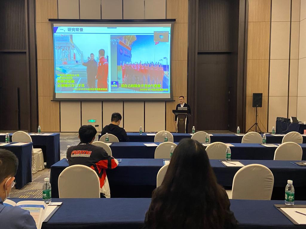 朱紅鈞教授擔(dān)任船舶與海洋工程分會場主席,并作題為“傾斜布置柔性管渦激振動響應(yīng)與IP準(zhǔn)則適用性評價研究”的主題報告,胡潔作了題為“氣體泄漏對海管水動力特性的影響分析”的分會場報告。在匯報交流中,與會學(xué)者對柔性海管渦激振動研究表現(xiàn)出濃厚的興趣。上海交通大學(xué)萬德成教授與朱紅鈞教授就柔性海管IP準(zhǔn)則的適用性進(jìn)行了深入探討。